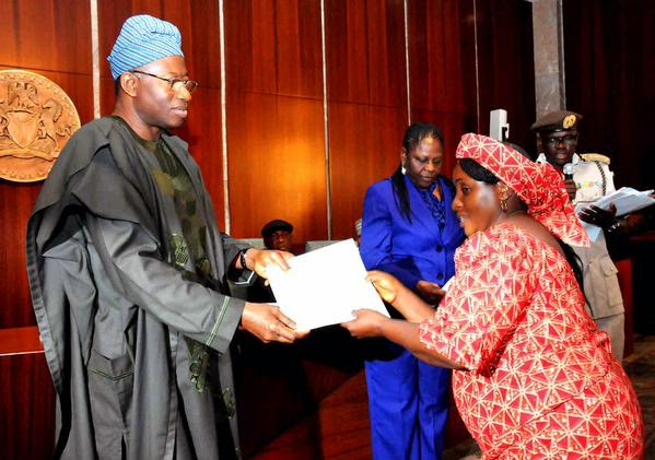 At an event that held at the presidential villa in Abuja today March 13th, Pres. Jonathan compensated each of the 15 families that lost their loved ones in the stampede that occurred during the 2014 Nigerian Immigration Service’s recruitment exercise. He gave each family N5million and also gave employment to 33 members of the 15 families. Photos from the event after the cut…