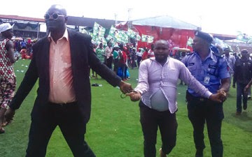 It was in the process of a brewing brawl that some policemen, drafted to the venue of the rally to provide security, whisked them away in a police vehicle.