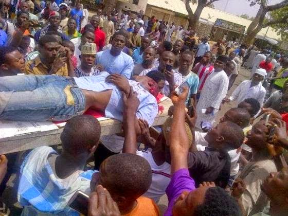 The man in the photo above was allegedly shot dead by a soldier this morning at Bauchi’s INEC Office after the military tried to gain access into the office. Residents of the state had blocked the military from entering the office as results were being collated and this sparked the violence. The residents had held a vigil outside the INEC office to await the announcement of last Saturday’s election when the military showed up. Another man was hit by a stray bullet. See the photos after the cut…