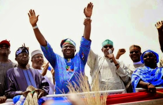 Following the uproar that arose from the recent anti-Igbo remarks by the Oba of Lagos, President-elect, Gen. Buhari has appealed to Igbos in Lagos state to bury the hatchet and vote for APC in the April 11th governorship election in their own interest, saying they will benefit from his government if they do so. According to him, all tribes are well represented in Lagos state and there is no Northern Nigeria or Southern Nigeria, we have only One Nigeria. Gen Buhari said this while campaigning for APC Governorship candidate, Akinwunmi Ambode in Lagos yesterday April 7th.