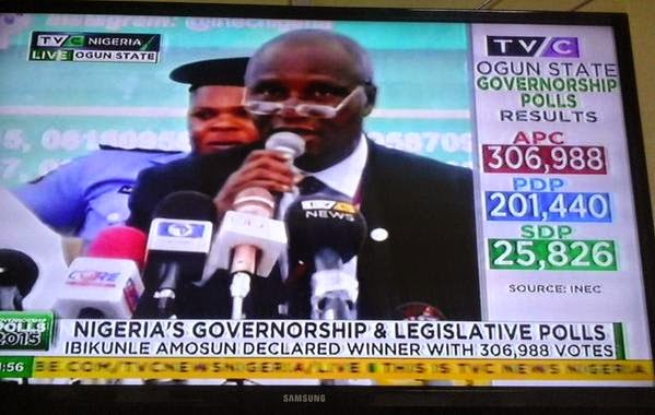 Inec few minutes ago declared Ogun state governor Ibukunle Amosun the governor elect and returned him elected.