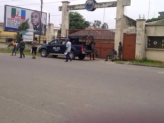 Following the Decision by the Rivers State Police Command to Barricade the Local Government Areas in Rivers State,a Member of the PDP who came in front of the Portharcourt City Local Government Council to Shout”We are Now In Charge,was asked by the angry Looking Policemen To Frog Jump.
