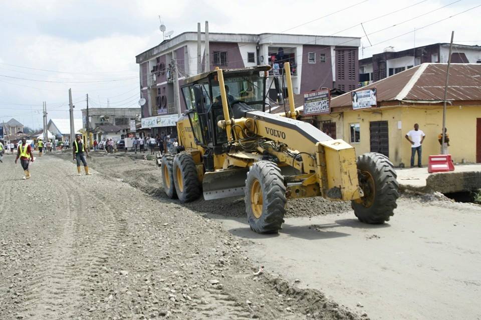 Picture 1: Rivers State Governor, Nyesom Ezenwo Wike inspecting work on a road project at Diobu in Port Harcourt.