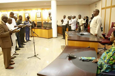 | The PDP CTC Chairmen during their swearing in by Barr Wike last Friday |