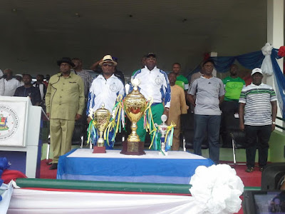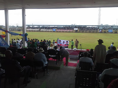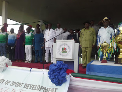 Bayelsa State Governor Mr.Seriake Dickson over the weekend launched the Bayelsa Restoration Team Football Competition aimed at wooing Bayelsa Youths to vote for him during the December 5th 2015 Governorship Poll in the state,he also commissioned the Nembe City Stadium.