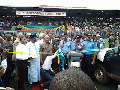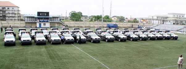 Rivers State Governor Barr.Nyesom Wike few minutes ago handed over 54 Patrol Hilux Van’s and 500 other gadgets to the Nigerian Police Force. IG of Polce Mr.Solomon Arase received the vehicles