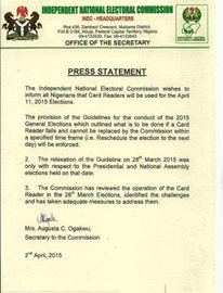 Page 1597, U referred to an announcement made by inec to use card reader to conduct the gubernatorial elections?