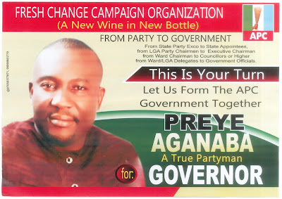 Ahead of the rescheduled Primaries of the All Progressive Congress(APC),one of those who struggled,suffered,withstood the political witch-hunting of the Federal Government under Former President Goodluck Jonathan. Prince Preye Aganaba,who is also an aspirant for the Governorship Ticket of the All Progressive Congress(APC) in Bayelsa,has a message for Delegates who will determine who clinches the Parties Ticket.