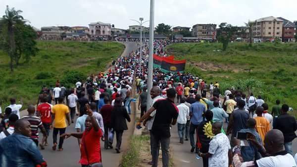 Members of the Indigenous People of Biafra are currently staging a peaceful protests in Lagos, major markets like Agada, computer villiage are reported to have been shutdown