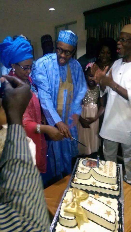 President Muhammadu Buhari today cut his 73rd Birthday Cake in Abuja with his wife Aisha Buhari and some Leadership of the APC led by its National Chairman John Oyegun