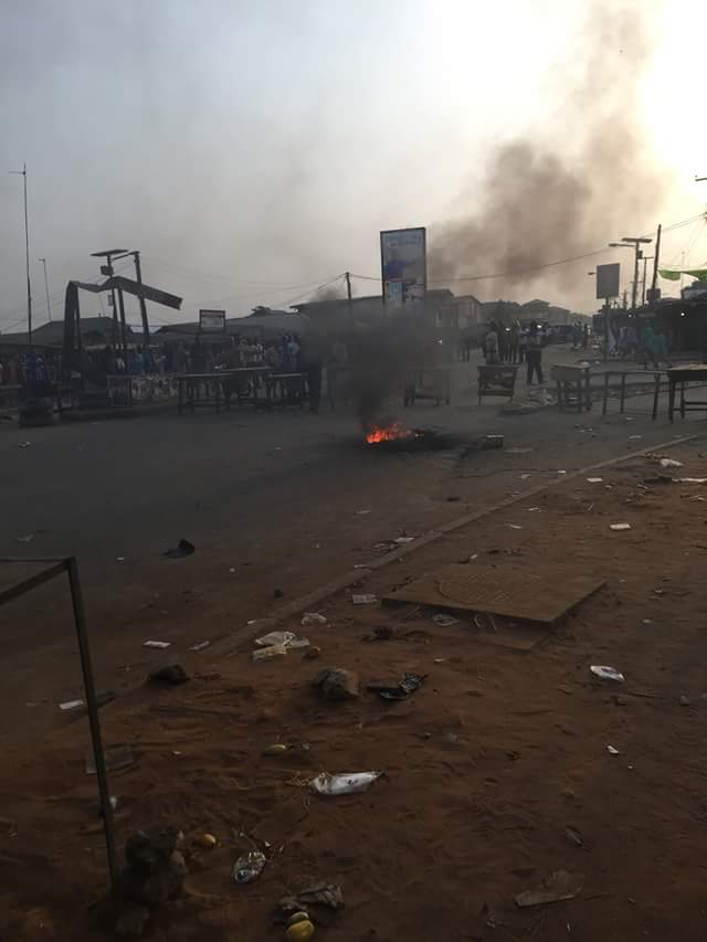 Thousands of Market Women, Youths has set the city of Aba Ablaze over the outcome of Justice Oyebisi Omoleye led five-member Appeal court panel which ordered the immediate swearing of Alex Otti as the governor of Abia State.
