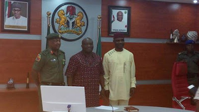 Abia State governor Dr Okezie Ikpeazu today at the Executive Chambers of the Abia State Government met with the the new commander 14 Brigade of the Nigerian Army,Brigadier General Lawrence Fejiokwu over the incessant killings of Armless Ipob Protesters by the Nigeria Army.