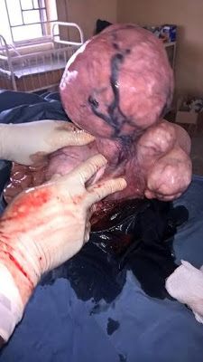 “The giant multiple fibroids were surgically removed yesterday at GH Etim Ekpo a typical rural hospital with absolute poor facilities and neglect from a-35 five year old married lady after spending years in a prayer house with false assurances that she was carrying a baby. We need help urgently to continue this missionary work”