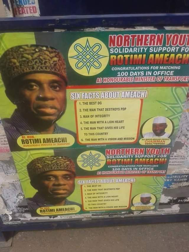 A group, Northern Youth Solidarity Support Group for Amaechi has painted various streets in Northern part of Nigeria to celebrate Chibuike Amaechi’s 100 Days in Office as Nigeria’s Minister of Transportation.