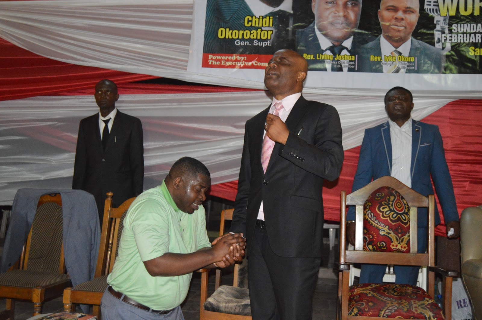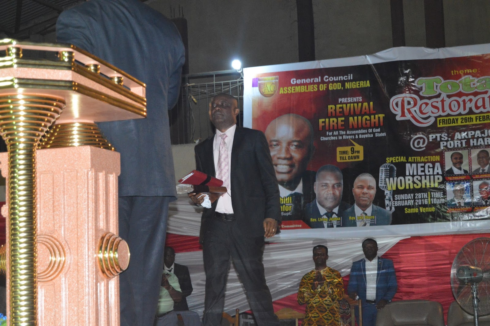 The General Supritendent of Assemblies of God Church Nigeria Rev Dr Chidi Okoroafor,Rev Living Joshua who is the Member of the Executive Commitee of Assemblies for South South Zone 2 of the Church and All the District Supritendents of Assemblies of God Church Nigeria in Rivers and Bayelsa States were all Present at the PTS Eleme for the Church Fire Night.