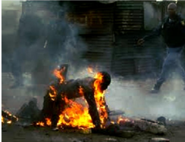 “The man is said to have confirmed that his bag contained human bones and that’s when the mob began rounding up the seven and burned them one by one.”