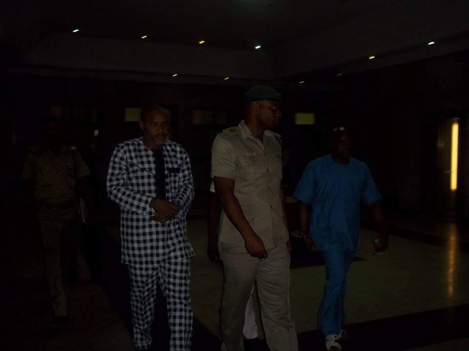 Leader of the Indigenous People of Biafra(IPOB) Mr Nnamdi Kanu has arrived the Abuja Federal High Court for his trial on the treason charges against him by the Department of State Security(DSS)