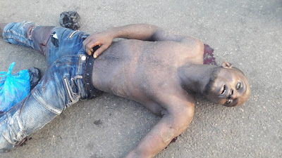 Very graphic photos: Alleged armed robber lynched in Ikeja