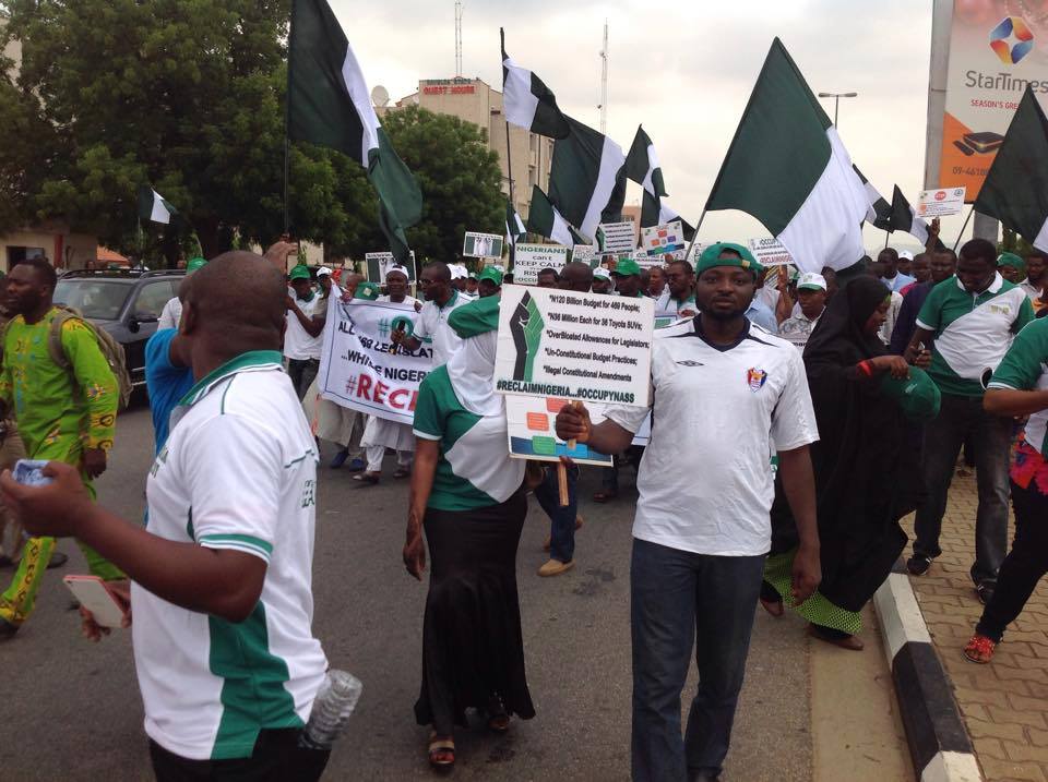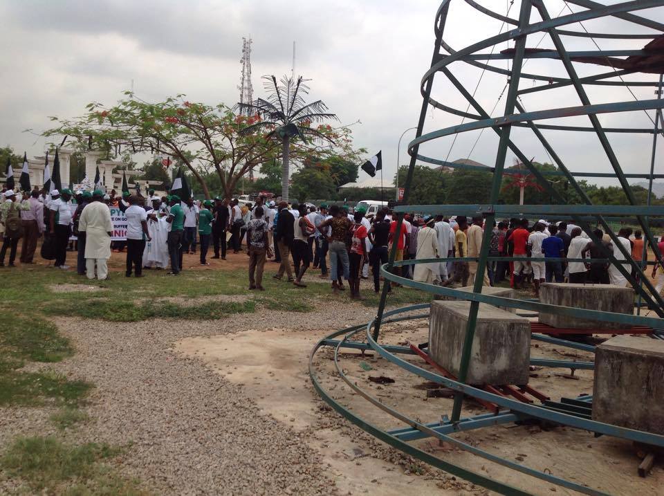 Youths,Civil Society groups are at the National Assembly complex protesting against the recklessness of the Nigerian Senators and the attempt to undermine constituted law against Corrupt Politicians by the Senate President Senator Bukorlar Saraki