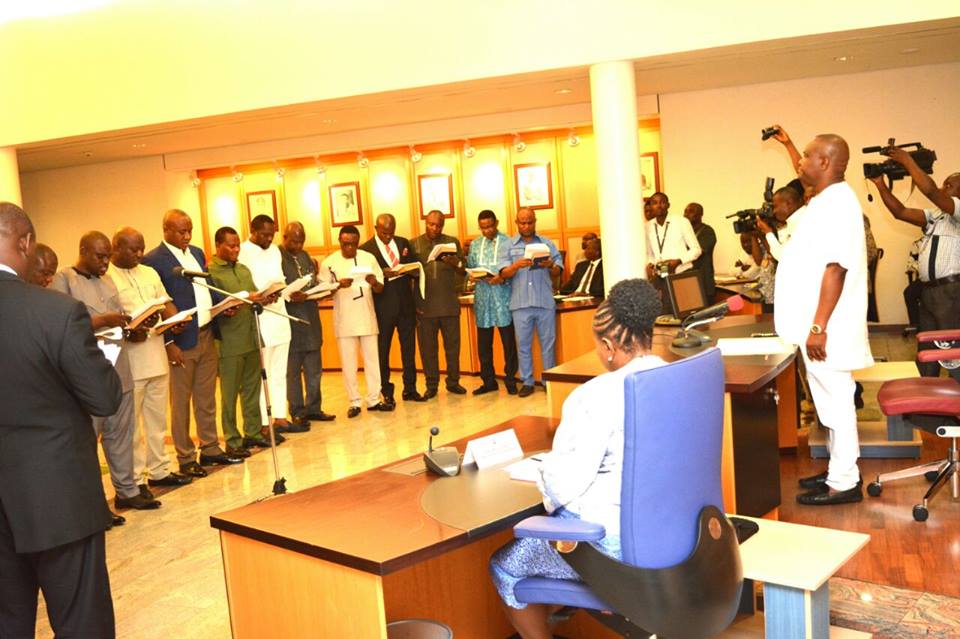 Governor Nyesom Wike on the 9th of May 2016 while Inaugurating the 17 New Caretaker Commitee Chairmen at the Government House Portharcourt