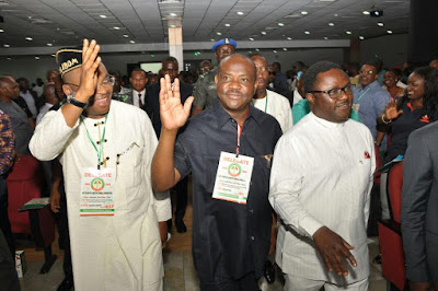 Governor Wike spoke on behalf of the PDP Governors of the Zone. Those in attendance included: Udom Emmanuel (Akwa Ibom); Prof Ben Ayade (Cross River) , Seriake Dickson (Bayelsa) and Senator Ifeanyi Okowa (Delta). Also in attendance were: Senator Godswill Akpabio, Senate Minority Leader and Leo Ogor (Minority Leader, House of Representatives).
