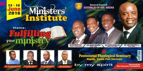 The General Council of Assemblies Of God Nigeria will on the 12th -15th of June hold Ministers Institute at the Pentecostal Theological Seminary Akpajo,Eleme in Rivers State