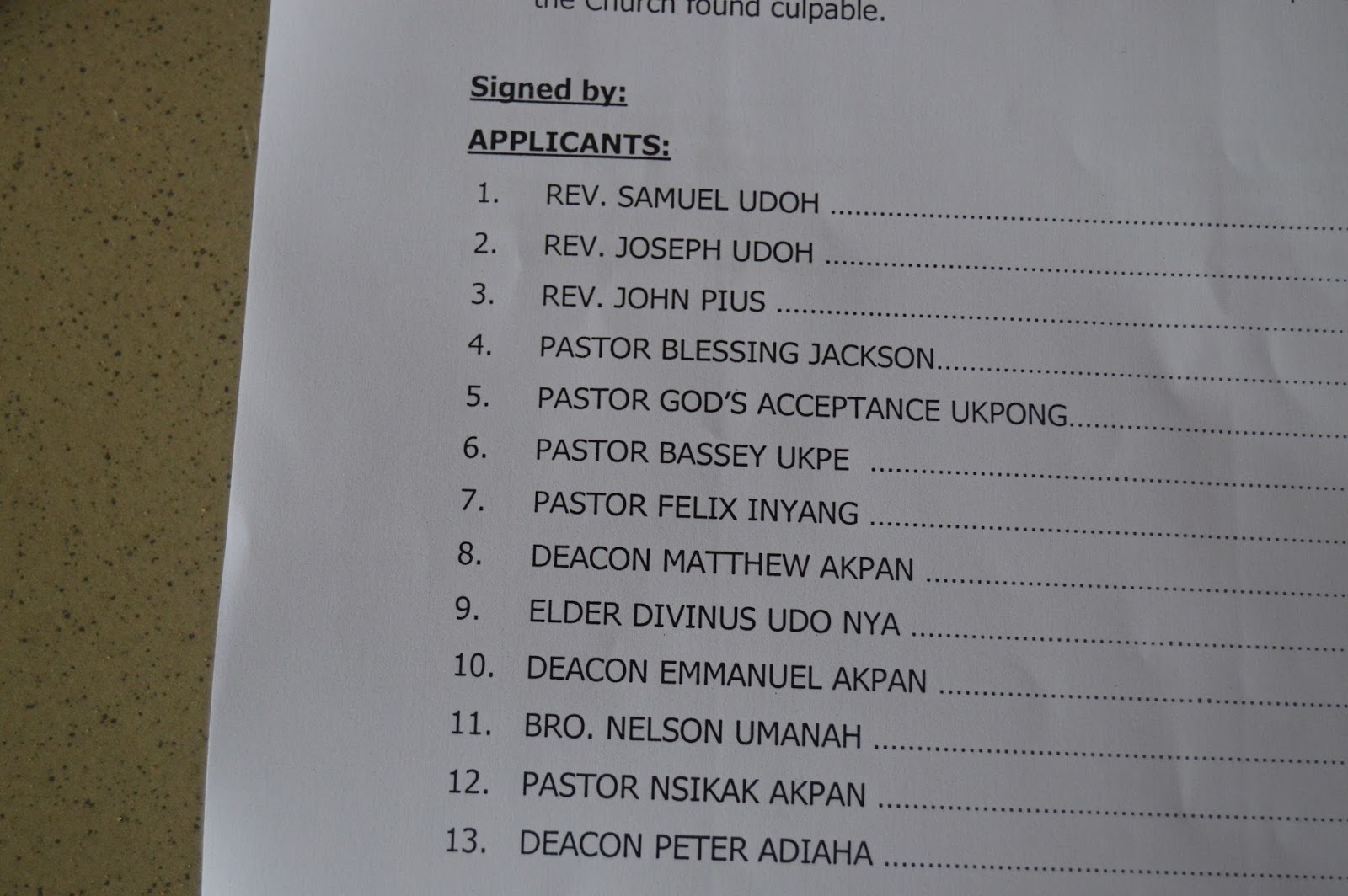 Rev Samuel Udoh,Rev Joseph Udoh,Pastor Blessing Jackson,Pastor Gods Acceptance Ukpong,Pastor Bassey Ukpe,Pastor Felix Inyang,Elder Divinus Udo Nya,Deacon Emmanuel Akpan,Pastor Nsikak Akpan and Deacon Peter Adiaha