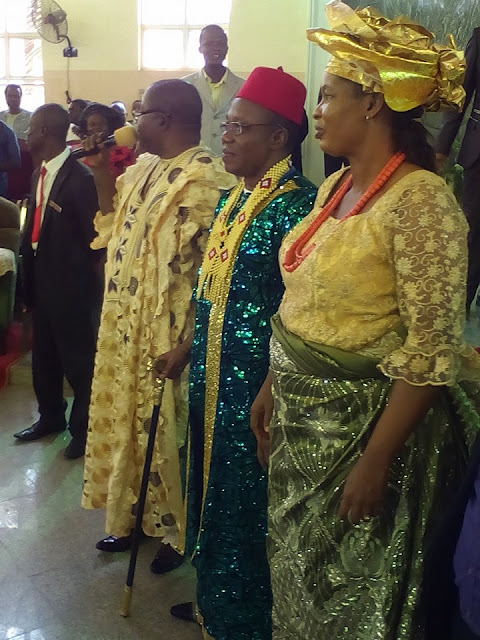 A Red Cap,Beeds were used in decorating Paul Emeka with his new Title after the Native Doctors who came to the programme with Suits had performed the Installation.