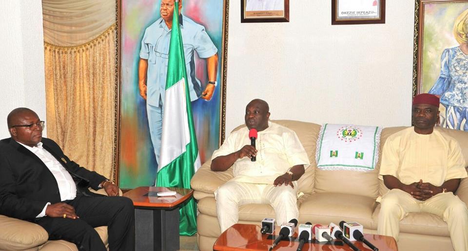 Abia State Governor Dr Okezie Ikpeazu is currently addressing a World Press Conference at the Abia State Government House In Umuahia.