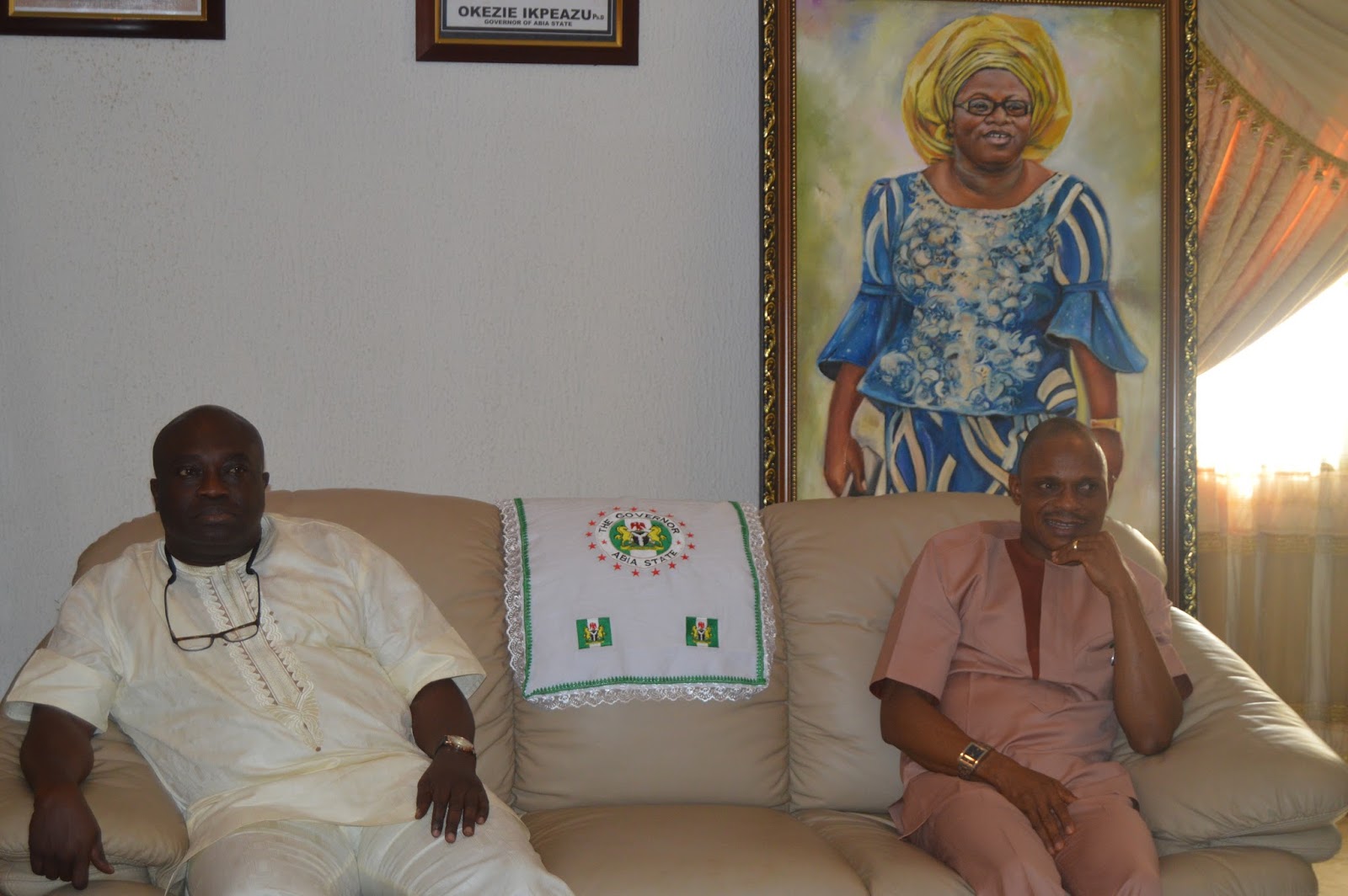 Speaker Of the Abia State House of Assembly Rt Hon Martins Azubuike led other Members of the PDP in the Abia State House of Assembly to pay solidarity visit to Governor Okezie Ikpeazu yesterday at the Government House Umuahia
