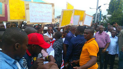 Oji Ngofa,Chikordi Dike,Collins Ordu,to mention but just a few were seen carrying Different placards at the entrance of the Rivers State High Court Complex.