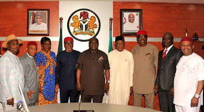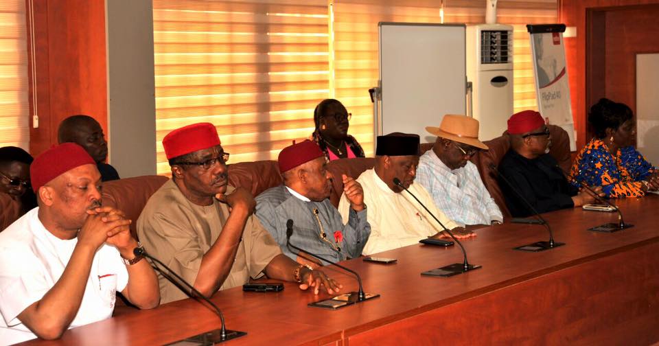 Senator Biodium Olujimi led an Ad Hoc Committee of the Senate, including Senator Enyinnaya Abaribe (Abia South) Senator T.A Orji (Abia Central), Senator Mao Ohuabunwa (Abia North), Senator Barnabas Gemade, Senator Samuel Anyanwu and Senator Sonni Ogbuoji, that paid a visit to the Governor of Abia State, Dr Okezie Ikpeazu at the Government House in Umuahia.