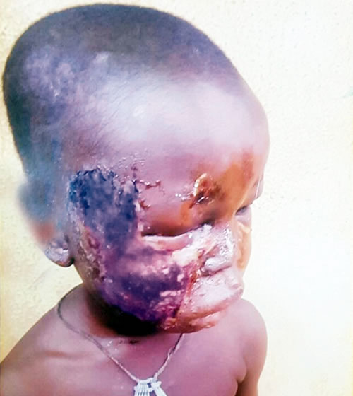 The victim, who is said to be in a nursery school, was reportedly blinded by the burns she suffered on the face, while her private parts were swollen.