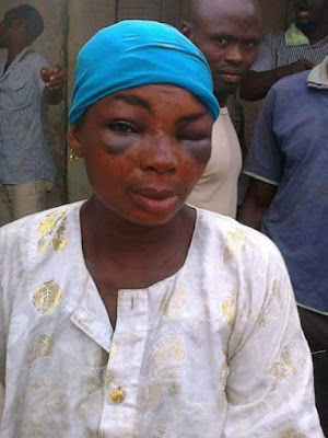 The woman allegedly beaten black and blue by husband According to Vincent Chinenye @Vincentwap who shared the picture of the woman on Twitter.