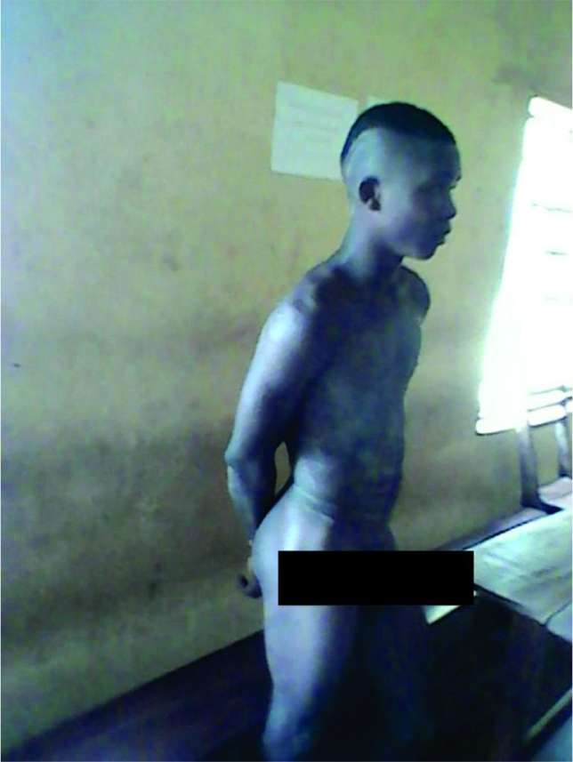 As Mrs Apeh took the knife from Odoh, neighbors came around to the scene, stripped him naked and viciously beat him up.