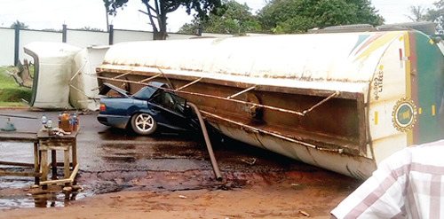 “The man whose car the truck fell on was trapped and we were busy trying to save his life, but unfortunately by the time the truck was lifted off the car, the man was found dead”.