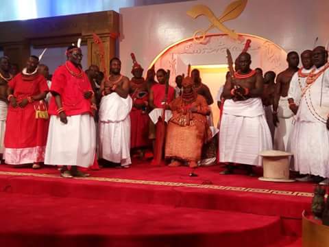 unveiled his motto, “No reward without industry”. He also asked the state government to as a matter of urgency; introduce the teaching of Edo Language and Benin history in schools in the state while promising that his reign will forge links with traditional authorities from all over the world. The event attracted prominent traditional rulers from all nook and crannies who came to celebrate the new entrant into the fold of royal fathers in the country. The list included the Olu of Warri, Ogiamien Ikemwoli , the Obi of Onitsha, Igwe Nnayelugo Alfred Nnaemeka Achebe, the Sultan of Sokoto, HRM Saad Abubakar III, the Emir Of Kano, Alhaji Sanusi Lamido Sanusi, the Ooni of Ife, Oba Enitan Ogunwusi Ojaja II, the Dein of Agbor, Dr. Benjamin Ikechuku Keagborekuzi I, and many representatives of prominent traditional rulers from across the country.