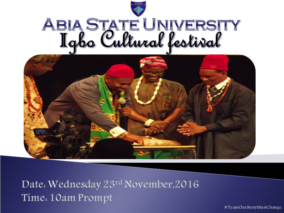 On Wednesday 23, November 2016, the University will roll of its drum to celebrate the Maiden edition of its Igbo Cultural festival.