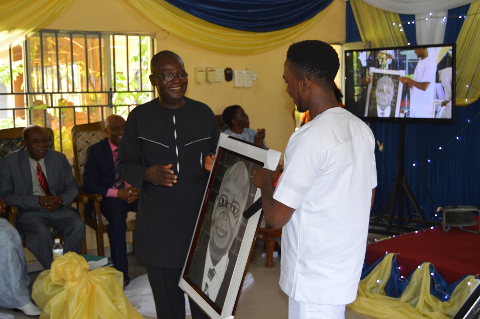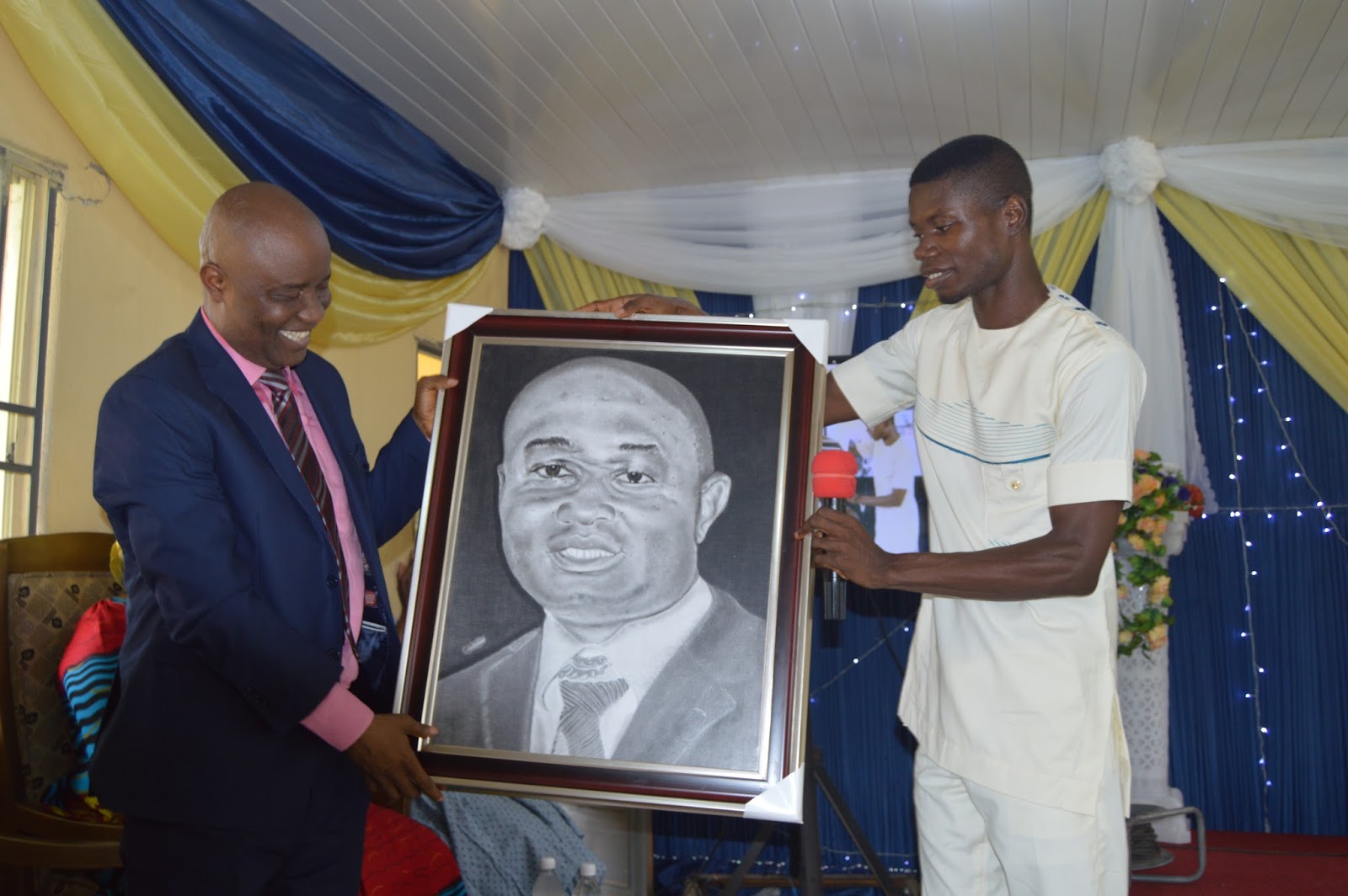 During the Maiden Convocation Thanksgiving Service,Master Ukpe Philip and Obiene Godspower,Gradueting Students of the Department Of Accounting Presented Portraits of Retired General Superintendent Rev Dr Charles Osueke,General Superintendent Rev Dr Chidi Okoroafor who is the Chancellor Of EVANGEL UNIVERSITY,Senator Sam Egwu,the Pro Chancellor of the University,Prof C.I Umechuruba,the Vice Chancellor of the University etc.