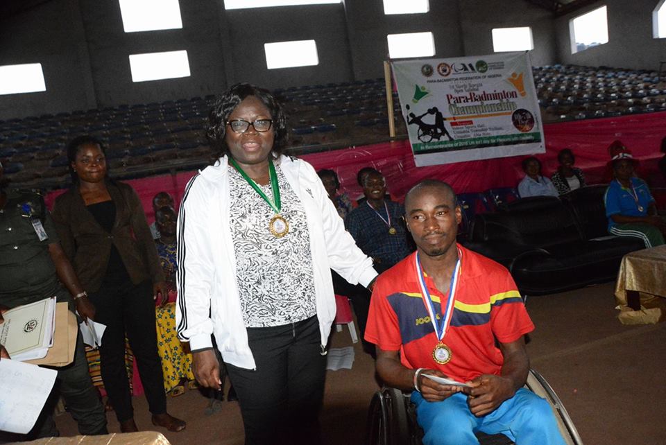 The Nkechi Ikpeazu National Open Parabadminton championship held at the indoor sports hall of Umuahia Township stadium. ‘Athletes from eleven states of the country converged in Umuahia for the three-day sports competition. Ogun, Ondo, Oyo, Plateau,Kano, Kaduna, Imo, Delta, Edo, Kwara and host Abia. Reigning champion of Mens sitting category Dada Dixon from Delta state won the star match and took home a gold medal and cash prize courtesy of the sponsor. A total of 26 winners in various categories of Gold, silver and bronze got medals with cash prizes while every athlete that participated in the competition received cash gifts all courtesy of Mrs. Nkechi Ikpeazu. With the sponsorship of this competition, her backing of female premier league side Abia Angels Football club, and sponsorship of the state female public servants sports competition Nkechi Ikpeazu is gradually etching her name as a sports philanthropist of national repute.