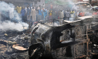 A truck exploded in a huge fireball killing at least 15 people on July 1 in the northeast Nigerian city of Maiduguri, the latest attack in a city repeatedly hit by Boko Haram Islamists. AFP PHOTO The blast which occurred in the morning hours happened at a checkpoint.