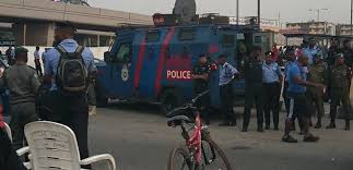 A combined team of regular policemen, mobile policemen, and the Nigeria Security and Civil Defence Corps, are seen on the routes leading to the governor’s office in Oke Mosan, Abeokuta.