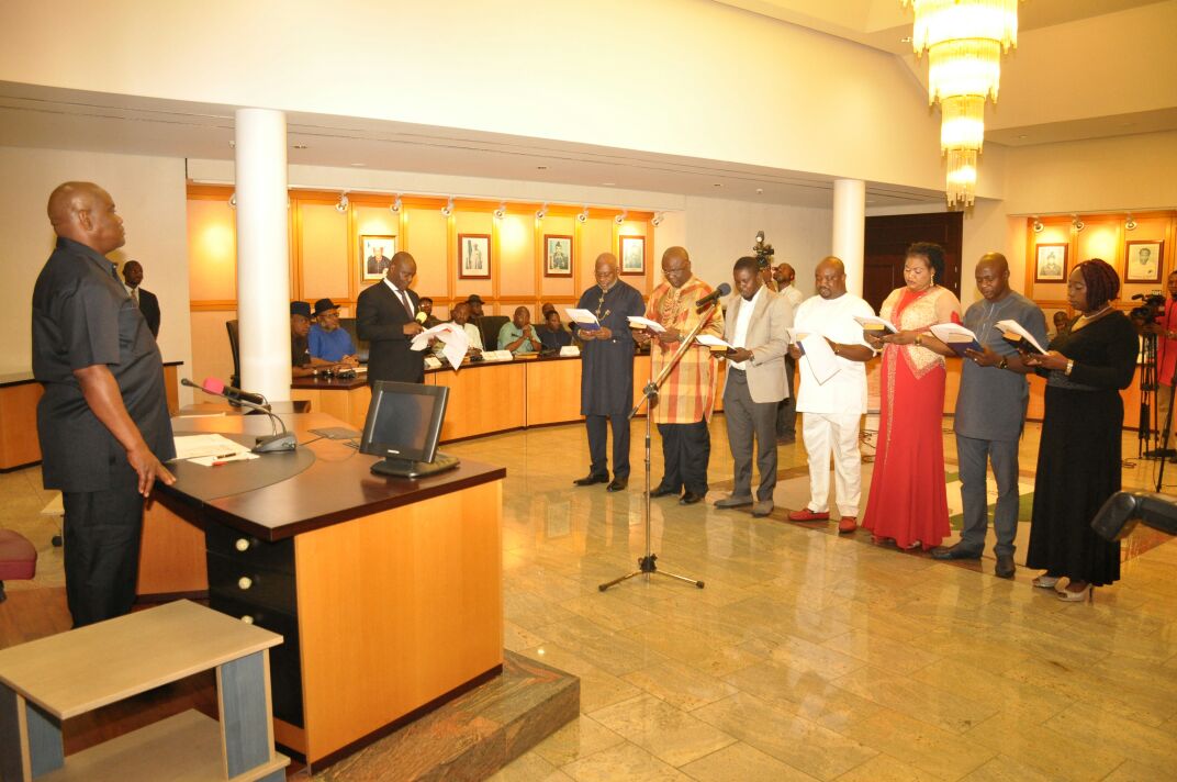 Governor Wike swore in the following as chairman and members of the Rivers State Road Maintenance Agency: Surveyor Sam Agwor —-Chairman, Mr Clapton Ogolo —-Secretary, Mr. Peter Abbey —Member, Mr Ability Nweke –Member,Madam Kate Ngbarna -Member, Mr. Kinikanwo Amadi –Member and Mrs Queen Anthony –Member
