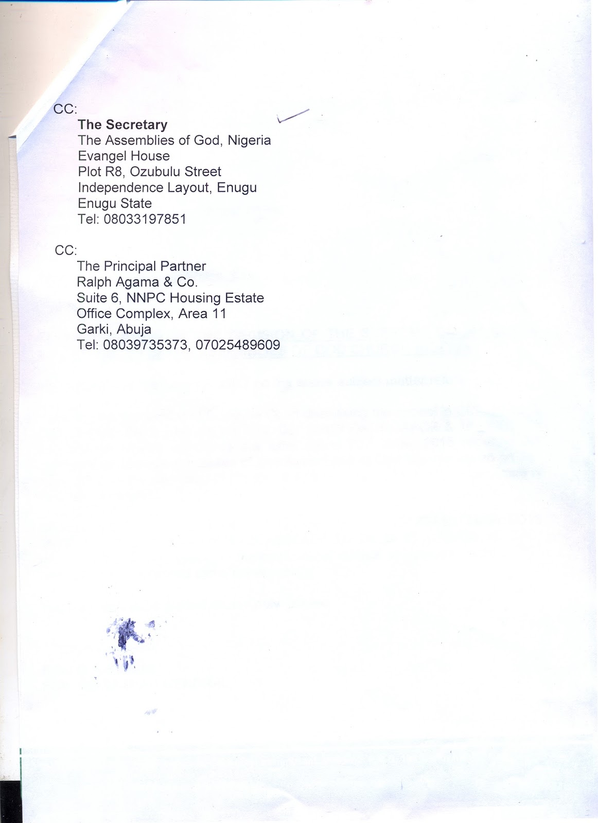 Following the February 24th of the Supreme Court in the Leadership crises that rocked Assemblies Of God Nigeria following the refusal of the Former General Superintendent Rev Paul Emeka to abide by the Decision of the General Commitee Suspending in March 6th 2014,the Corporate Affiars Commission has written to the Leadership of Assemblies Of God Nigeria.
