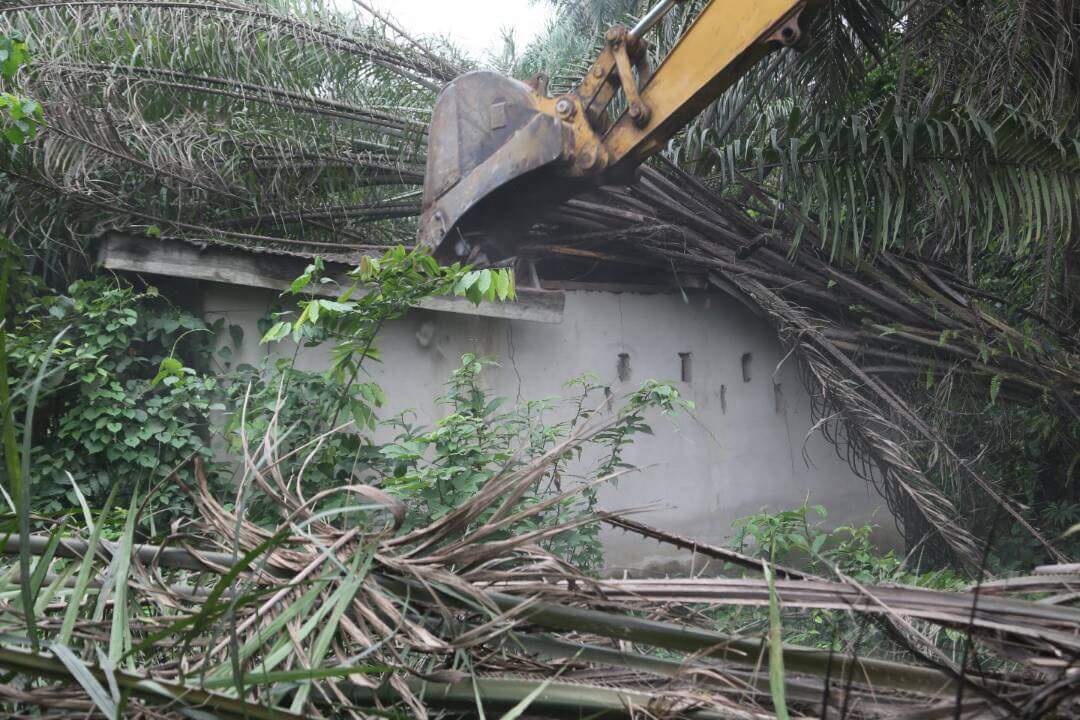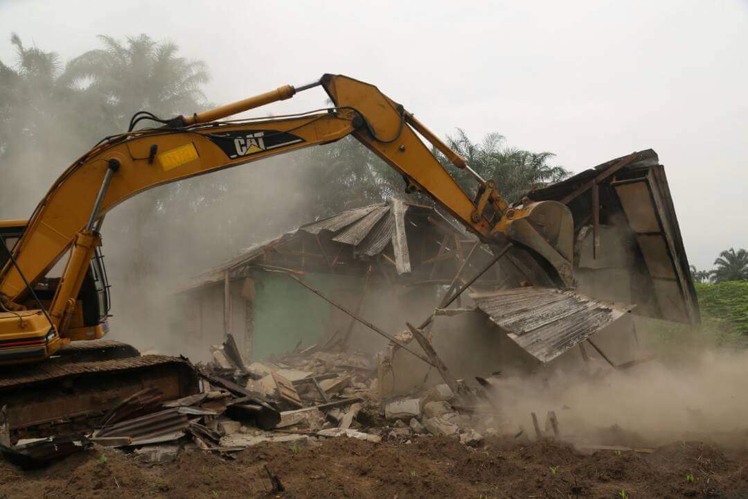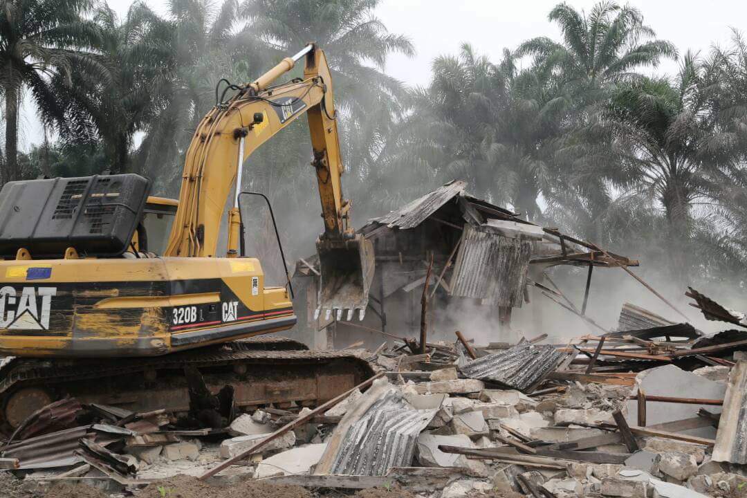 Abia State Government today demolished kidnappers hideouts in Ugwunagbo LGA of the State.