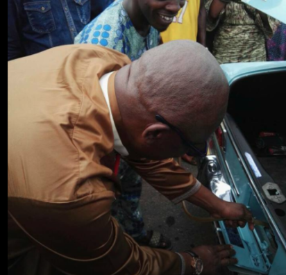 The Ekiti State governor Ayodele Fayose in this photos was reportedly buying PMS from the blackmarket in Ekiti.