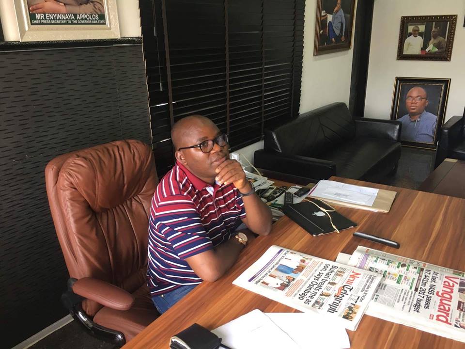 Enyinnya Appolos a Former Personal Assistant to Governor Okezie Ikpeazu was appointed the Chief Press Secretary to the Governor after the sack of Mr Godwin Adindu the Former Chief Press Secretary.