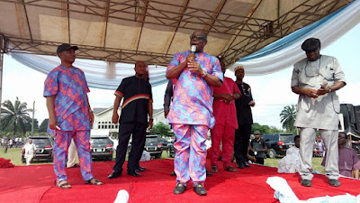 Minister Of Transportation Mr Chibuike Amaechi yesterday at the rally by the All Progressive Congress(APC) named Chief Hon. Victor Tombari Giadom, Deputy National Secretary of All Progressives Congress as the New Leader of the Party in Gokana LGA.