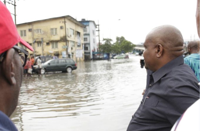 The governor inspected the flooded areas in Port Harcourt with Julius Berger engineers and officials of the State Ministry of Works.