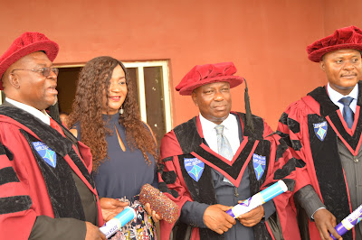 Deputy Speaker of the Abia State House of Assembly and Member Representing Bende North State Constituency in the Abia State House of Assembly Rt Hon Cosmos Ndukwe today bagged a Doctor of Philosophy Degree in Mass Communication(Broadcasting) from the Abia State University Uturu at the 25th Convocation Ceremony of the University held today August 19th 2017.